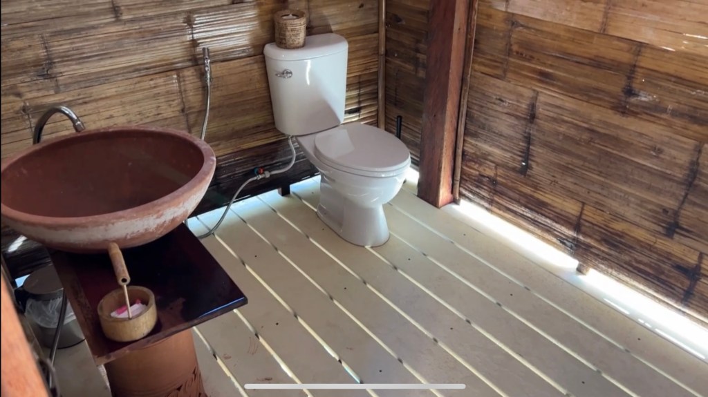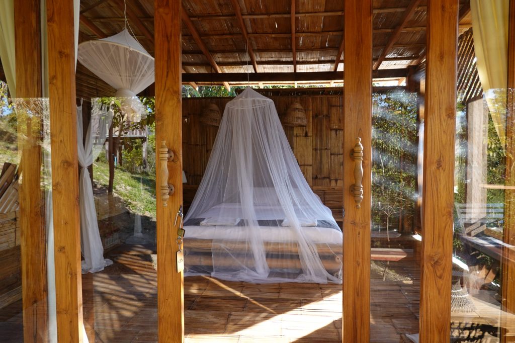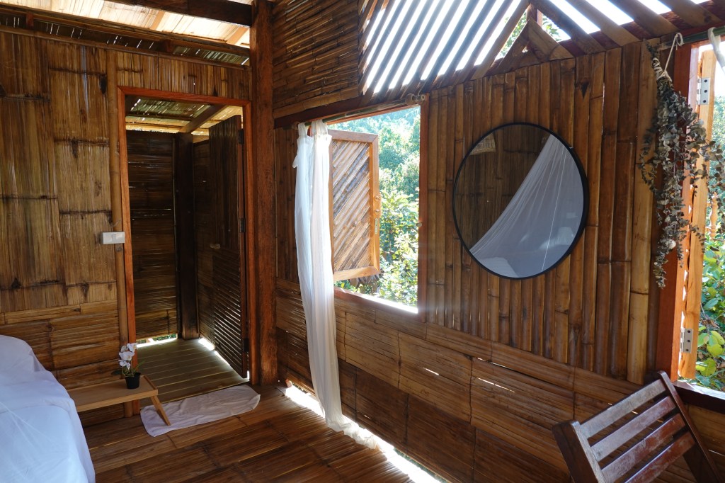 🏡住宿:住宿特别清新浪漫,是glamping的feel,我们订的双人房是85美元一晚的价格, 包早餐和morning call。有热水洗澡(水温不能调,我觉得过于烫),有电,有蚊帐,有private bathroom,无暖气。卫生间有个用竹子搭的屋顶,空气温度为室外温度,也看到周围别的房型的卫生间没有屋顶的。1月份夜里温度大概10度左右,可以根据自身体感考虑多穿件衣服睡觉。