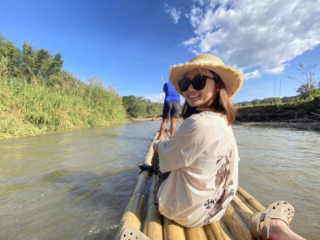下午的行程就跟大象无关了。先是带我们参观了Karen village,然后在乡村田野里走了一圈,看了一下当地的庙,去了一个瀑布游泳,最后是坐竹筏漂流回去。我唯一的槽点是我本来期待这个guide跟我们讲解很多有趣的东西,比如说Karen village的一些文化啊传统之类的,或者说当地农耕的趣事,或者是庙里的信仰、活动等。事实上,这个guide英文都说不清楚,更不要说讲解了,所以这一点我是有些失望的。不过如果光是看自然风景的话,还是很不错滴!