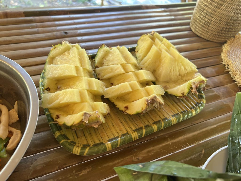 中午的时候guide会给我们做竹筒饭,炒个菜,还有当季的新鲜水果。实在是香喷喷,比期待值高出了许多!Guide会很耐心地等我们吃完再开始下午的行程