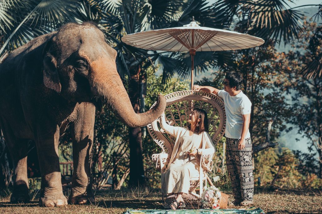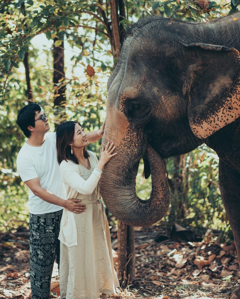 🕓 行程:我们大概下午3点左右过去check in,周围chill了一会儿,4-5点是大象的happy hour,可以跟它们玩,喂它们吃东西,同时有提供酒水。然后就是慢慢地enjoy晚餐,天黑了就差不多回房休息,洗漱睡觉😴 第二天一早8:30大象就来叫早了(可以自己选择时间),我的摄影师也到了。我请的这位摄影师收费大概是300美元1.5小时。拍完后吃早餐,然后开始我订的Elephant Jungle Expedition tour,费用为100美元一人。